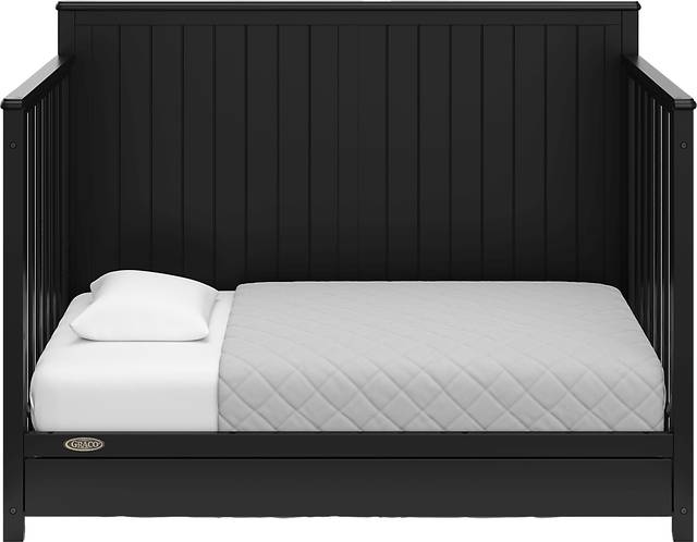 The Maralah I convertible crib features a full-size under-crib storage drawer and is crafted from pine wood, engineered wood, wood composites, and includes Euro drawer glides. Designed to adapt to your growing baby, it is equipped with an adjustable mattress support base with four different height options, so the mattress support base's position can be lowered as your child grows. Please note, this crib may only be used until your child can easily climb out or is taller than 35 inches. To support your child's journey from babyhood to toddlerhood and beyond, the Maralah I can be converted to a toddler bed, daybed, and full-size bed with headboard and optional footboard. Designed to fit any standard full-size crib & toddler mattress. Customer assembly is required.
