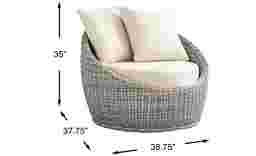 A soothing stillness and easy sense of escape wrap the Maraluna collection with an energy of restful grace that whispers the promise of a tranquil retreat. Casual contemporary design meets tropical woven wicker, balanced by a gently curved frame and tailored proportions. This swivel chair in a gray finish and its plush cushions in beige create effortless comfort with outdoor durability, inviting long conversations or quiet moments under open skies.