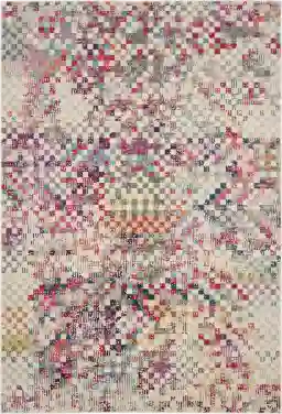 Patterned rugs are an excellent design tool for tying a room's decor together. Because this geometric design features a versatile palette of ivory, pink, blue, and green, it can seamlessly bridge the gap between various accent colors in your space. For a cohesive contemporary look, we recommend matching your throw pillows or wall art to one of the secondary colors in the rug's pattern.