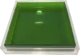 Based on our expertise with this material, we recommend wiping the surface with a soft, damp cloth as needed to remove dust or fingerprints. To maintain the high-gloss, crystal-clear finish, avoid using abrasive cleaners, ammonia-based products, or rough scrubbers, as these can scratch the lucite. Simple, gentle maintenance is all that’s required to keep the encased green color looking brand new.