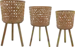 This set of three planters is crafted from bamboo, a material celebrated in modern design for its sustainable properties and natural, organic texture. The woven pattern adds a sophisticated "Boho" aesthetic that provides a warm, artisanal contrast to the sleek lines of contemporary patio furniture. Because bamboo is naturally sturdy, these pieces offer a durable home for your greenery while maintaining a lightweight profile for easy repositioning.