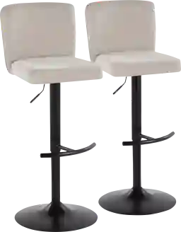 Enjoy simple comfort with the Marcei I Beige Adjustable Swivel Barstool, Set of 2. Featuring an adjustable 360 degree swivel base and a sleek upholstered fabric seat with a chevron tufted pattern, the Marcei adds contemporary flair to any dining or bar area. Available in various upholstery colors and finishes, choose the one that fits your space best. Customer assembly required.