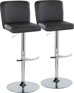 Enjoy simple comfort with the Marcei II Black Adjustable Swivel Barstool, Set of 2. Featuring an adjustable 360 degree swivel base and a sleek faux leather upholstered seat with a chevron tufted pattern, the Marcei adds contemporary flair to any dining or bar area. Available in various upholstery colors and finishes, choose the one that fits your space best. Customer assembly required.