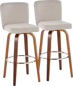 This set of two is ideally scaled for compact living. With a width and depth of 22 inches, these stools offer a substantial, comfortable seat while maintaining a footprint that fits neatly into smaller urban bar areas or narrow kitchen islands. The contemporary style and sleek walnut finish provide a visually light profile that helps maintain an open feel in a smaller room.