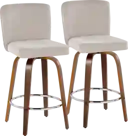 These stools are an excellent solution for urban apartments or smaller breakfast nooks where space is at a premium but comfort is still a priority. The streamlined four-leg design and 21-inch footprint provide the support of a full-back chair without the bulk of traditional dining furniture. Additionally, the walnut finish and beige tones offer a neutral, sophisticated palette that helps a smaller room feel more open and airy.