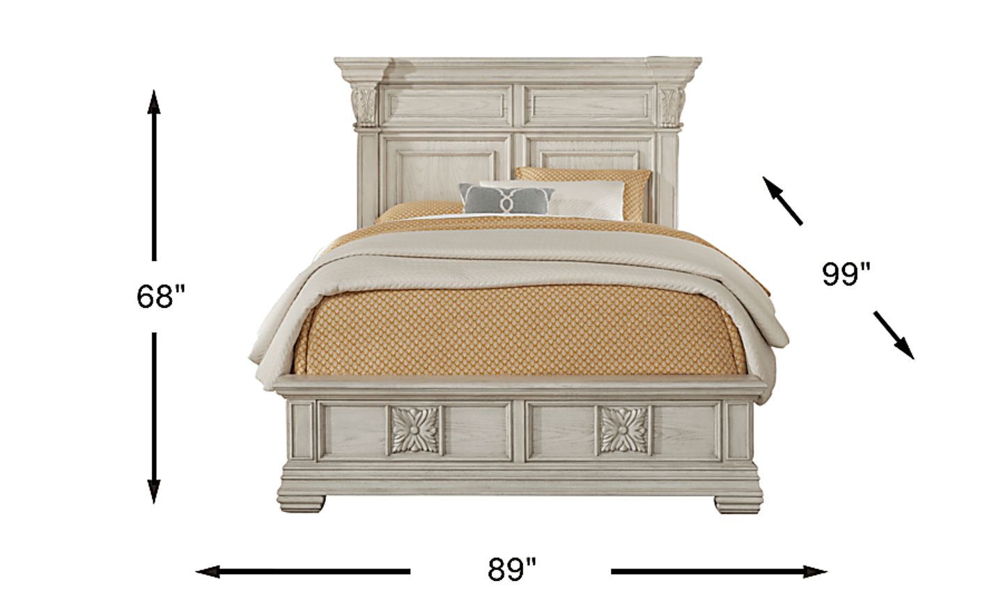 For a classic bed with designer impact, the Marcelle bed makes an excellent choice. This elegant panel bed boasts Architectural style columns and chic moulding details. Made with poplar solids and birch veneers in a white finish, the bed features a tall headboard balanced by a low footboard. Reversible rails allow you to raise or lower the height of your mattress. Mattress and foundation (if required) sold separately. Bed shown is queen size.