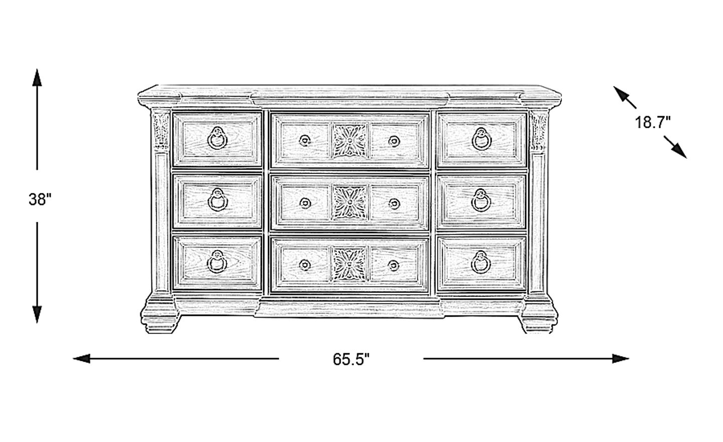 65.5"wx"w x 18.7"d"d x 38"h"h
