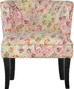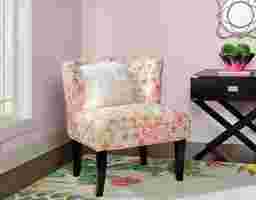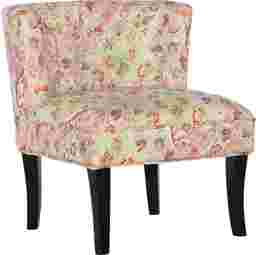 Classic seating gets a whimsical update in the armless Marcellina accent chair with a deep seat. Set overtop four black legs, its frame is crafted from rubberwood with a plush upholstery for an approachable look. Foam padding lends comfort to this chair, while its button tufted back wraps around to tie everything together. A playful and colorful print outfits this chair for a pop of pattern, making this piece versatile enough for the unused corner of your room. Customer assembly is required.