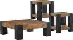 Light catches the tabletop's grain and warm tones settle into the room as the Marco table collection's inviting texture and structural form come to life. Rooted in modern style, this occasional table set adds a cozy and organic charm to any room. Each table showcases a plank-inspired top crafted from pine veneers in a rich, natural brown finish that boasts an intricate wood-like detailing, bringing a touch of nature indoors. Square black legs peek through each corner, highlighting the clean-lined silhouettes and bold contrasts.