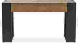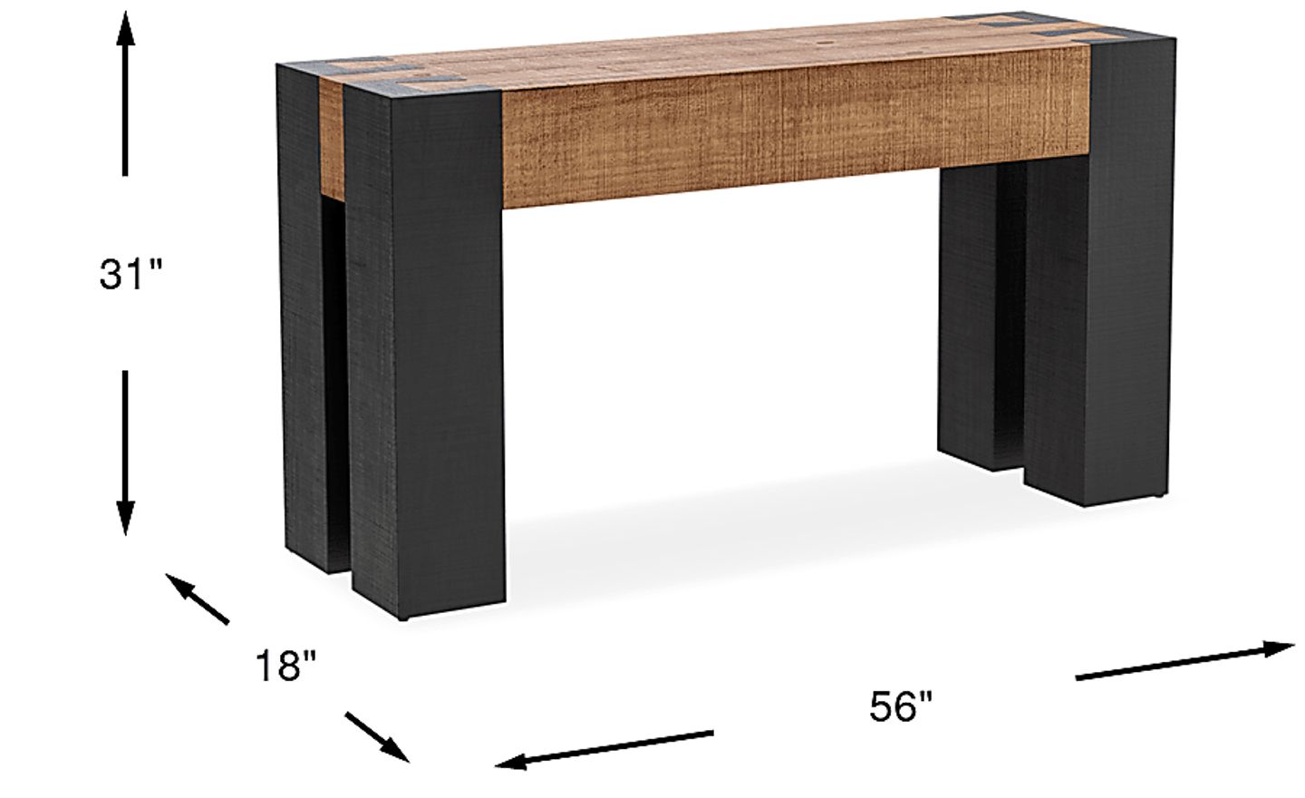 For a 56-inch surface, we suggest a layered approach to create visual interest. Our stylists recommend placing a larger anchor item, such as a table lamp, on one end and a vertical element like a tall vase on the other to draw the eye upward. Because this table features a bold contrast between the natural top and black legs, incorporating decor with metallic accents or organic textures will highlight its modern, cozy aesthetic.