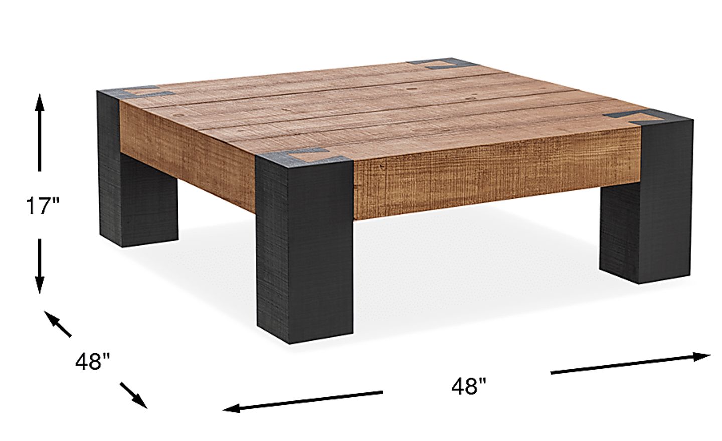 This table features a substantial 48-inch square footprint and stands 17 inches high. Based on the industry "two-thirds rule," this coffee table is best paired with larger sofas or sectionals that are at least 6 feet long. The 17-inch height is designed to sit level with or slightly below most modern sofa cushions, providing an ergonomic height for reaching drinks or decor while maintaining a sleek, low-profile silhouette.