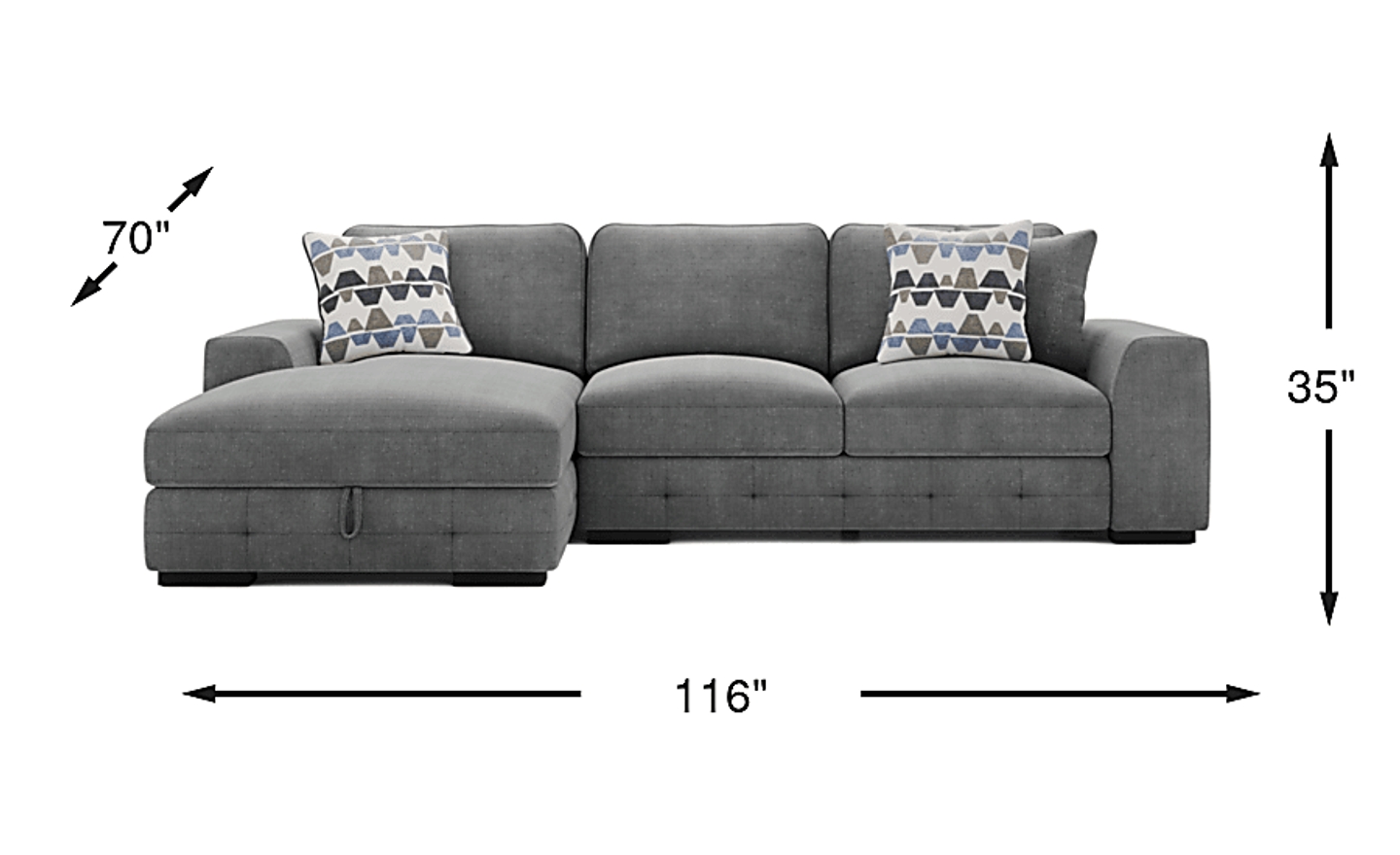 To ensure a proper fit, we recommend following the "two-thirds rule," where the sectional occupies about two-thirds of the wall it against. With a width of 116 inches and a depth of 70 inches, you should also measure for at least 18 to 24 inches of clearance around the piece to maintain easy walkways. Before ordering, it is also essential to measure your doorways and hallways against the sectional's 35-inch height to ensure the delivery team can navigate it into your home safely.