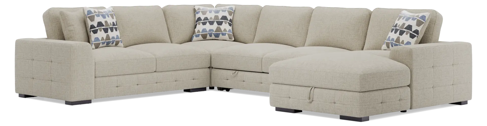 This piece is specifically designed with a "condo" theme, meaning it prioritizes a streamlined profile without sacrificing seating capacity. The contemporary track arms are sleek and space-saving, providing a wider seating area within a smaller overall footprint. Additionally, the integrated storage chaise is an ideal solution for urban living, offering a hidden compartment to store extra blankets or pillows without the need for additional bulky storage furniture.