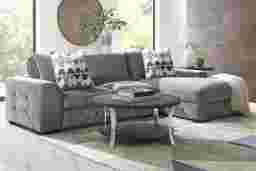 Create a lively space with the Marcola sectional. Upholstered in soft woven fabric, this piece comes in an ash gray color. Contemporary in style, the sectional features a convenient storage chaise, giving you plenty of room for extra blankets, pillows and more. Sleek track arms and tufted detailing add to the stylish appearance, while matching accent pillows bring a bit of color. Upholstery: 100% Polyester
