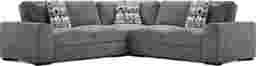 Create a lively space with the Marcola sectional. Upholstered in soft woven fabric, this piece comes in an ash gray color. Contemporary in style, the sectional features a convenient storage chaise, giving you plenty of room for extra blankets, pillows and more. Sleek track arms and tufted detailing add to the stylish appearance, while matching accent pillows bring a bit of color. Upholstery: 100% Polyester.