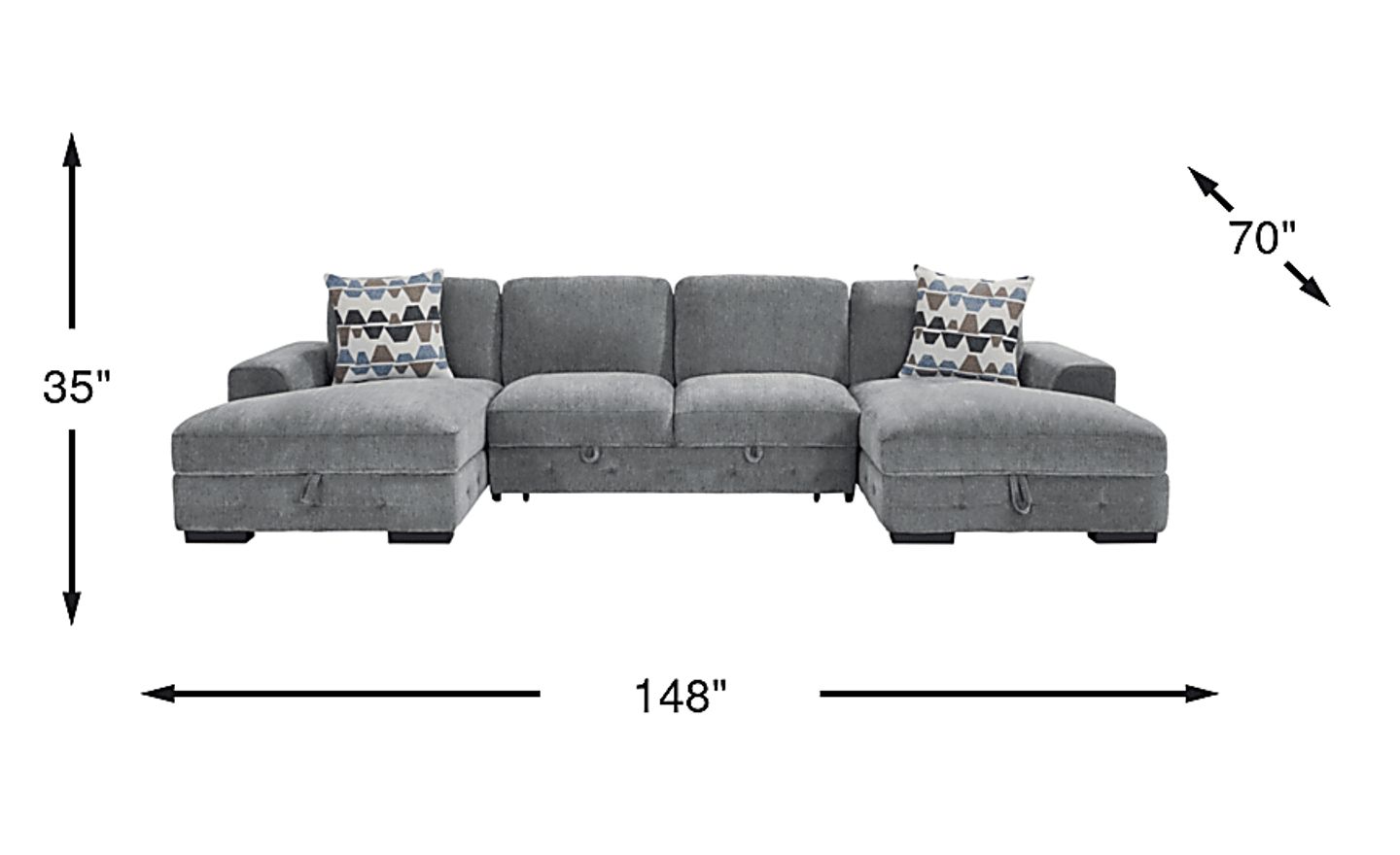 With an expansive width of 148 inches, this sectional is an ideal anchor for large, open-concept spaces or grand-scale family rooms. Its 35-inch low-profile height ensures that while it provides significant seating, it won't obstruct sightlines, maintaining an airy and connected feel between your living and dining areas.