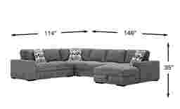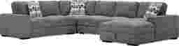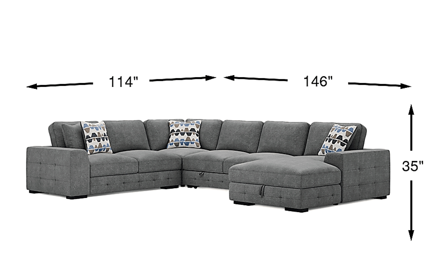 Create a lively space with the Marcola sectional. Upholstered in soft woven fabric, this piece comes in an ash gray color. Contemporary in style, the sectional features a convenient storage chaise, giving you plenty of room for extra blankets, pillows and more that create a room of its own for the sectional's popup sleeper. Sleek track arms and tufted detailing add to the stylish appearance, while matching accent pillows bring a bit of color. Upholstery: 100% Polyester.