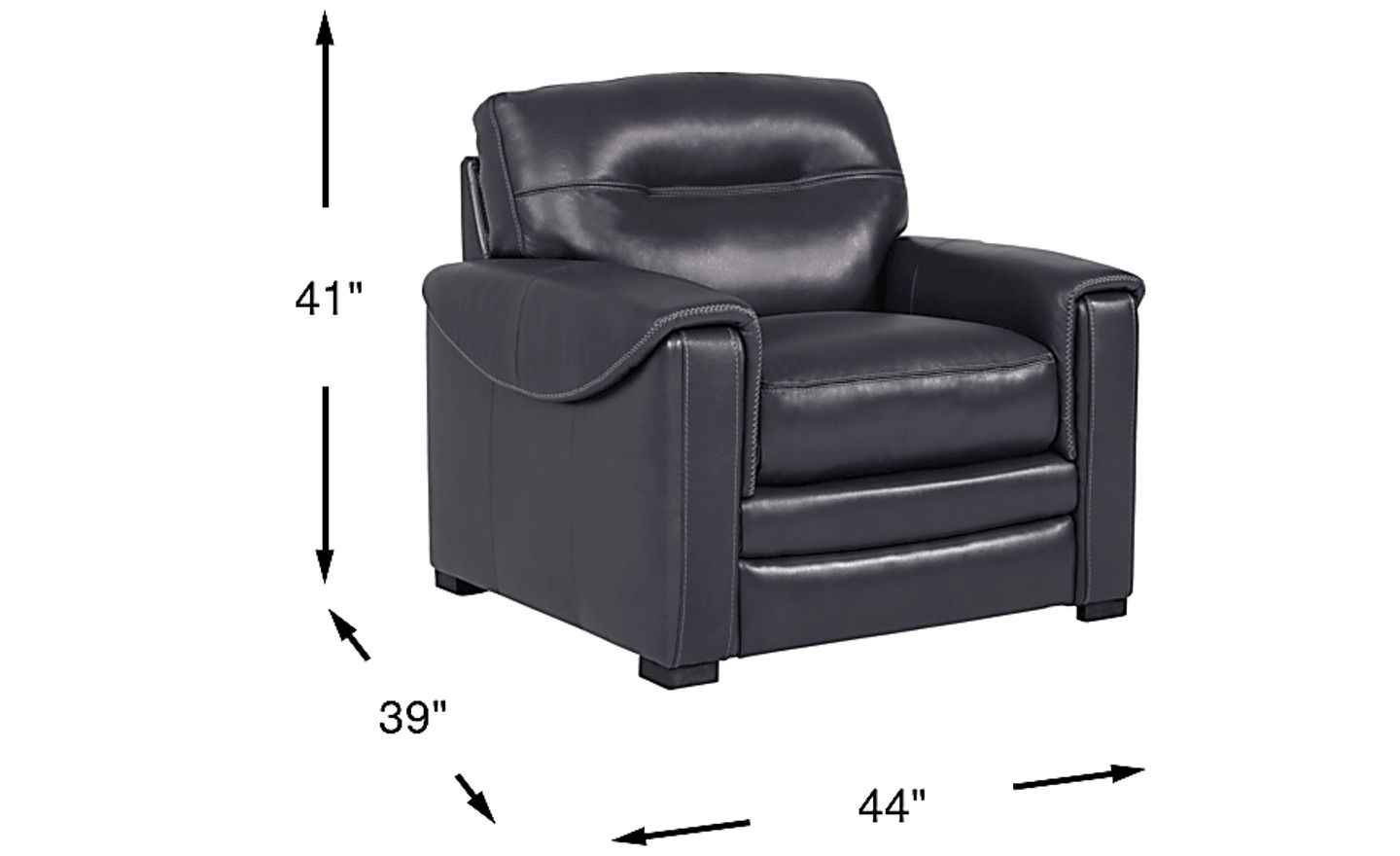Relax with the Margallo chair, a perfect addition to your living room. Featuring top grain leather upholstery where the body touches in a wonderful shade of blue, this piece has a style that's sure to last. Horizontal channel detail and track arms complete the look of this comfortable and attractive chair. Top grain leather where the body touches with polyurethane sides and backs.