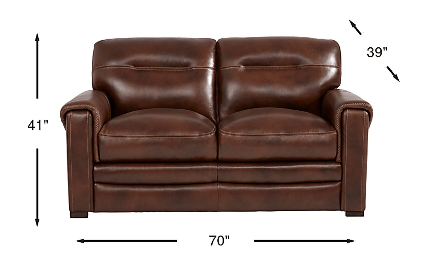Expand your seating in style with the Margallo loveseat. Luxurious top grain leather where the body touches in a chic brown color highlight this piece as both attractive and comfortable. The horizontal channel detail and unique track arms give this piece a unique and contemporary appearance. Top grain leather where the body touches with polyurethane sides and backs.
