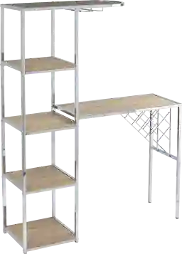 Mix it up at your next dinner party with this Mariabo storage serving table. A spacious countertop provides plenty of room to shake cocktails and serve appetizers, while four shelves conveniently display your favorite mixers and decor items. Tuck this multifunctional bar station into your dining room to kick start your evenings, or place in your open concept living space as a contemporary centerpiece. Entertain in sleek style when you bring home this bar table with storage. Customer assembly is required.
