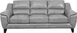 Understated with clean, tailored lines, it's easy to relax on the beautiful Marielle sofa. Upholstered in luxurious top grain leather where the body touches in a chic gray color, the genuine leather naturally develops a unique patina and softness from use. Each attached back cushion features lower back padding for additional support and comfort. A contemporary frame with sloped arms and tapered legs showcases a clean, streamlined silhouette. Top Grain Leather Where The Body Touches and Polyurethane Fabric sides and backs.