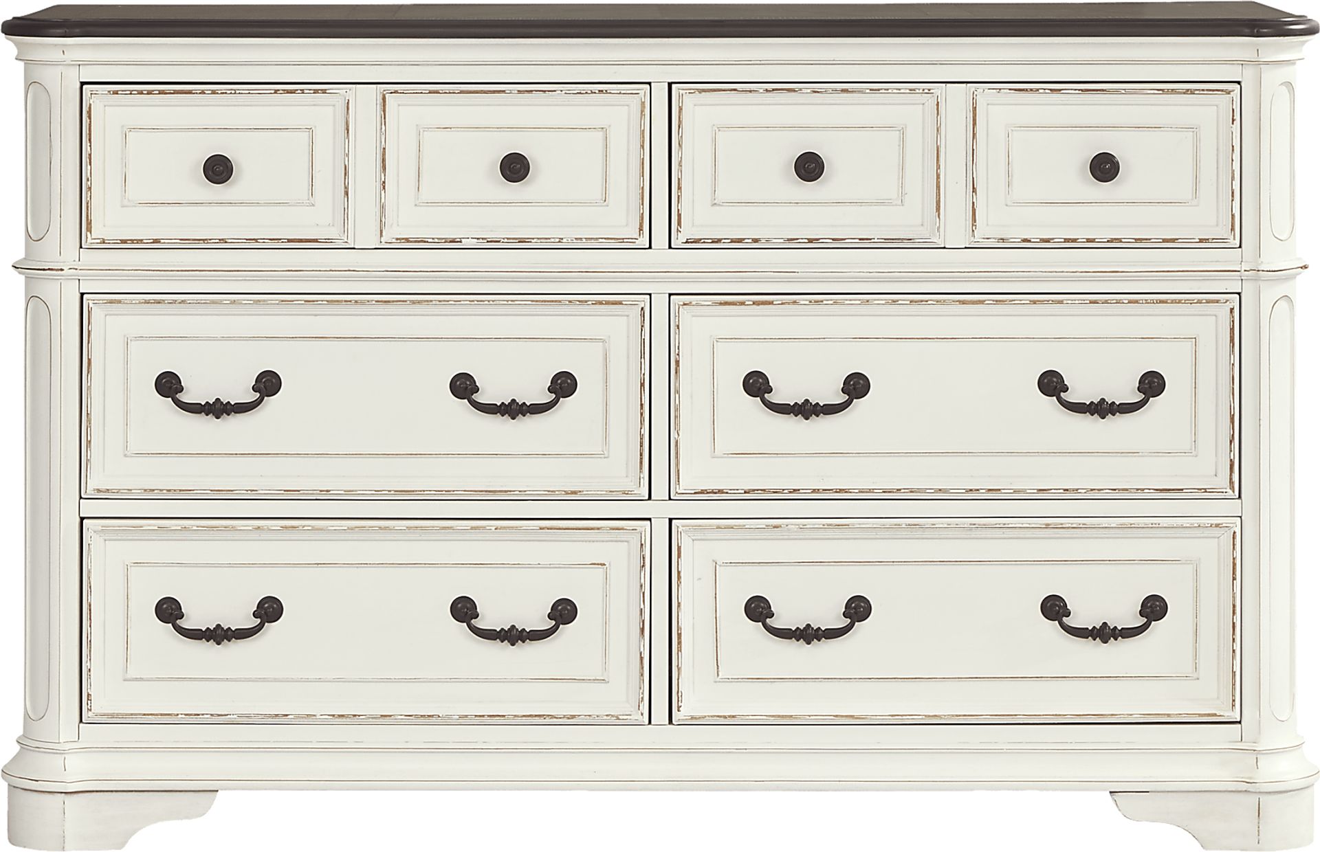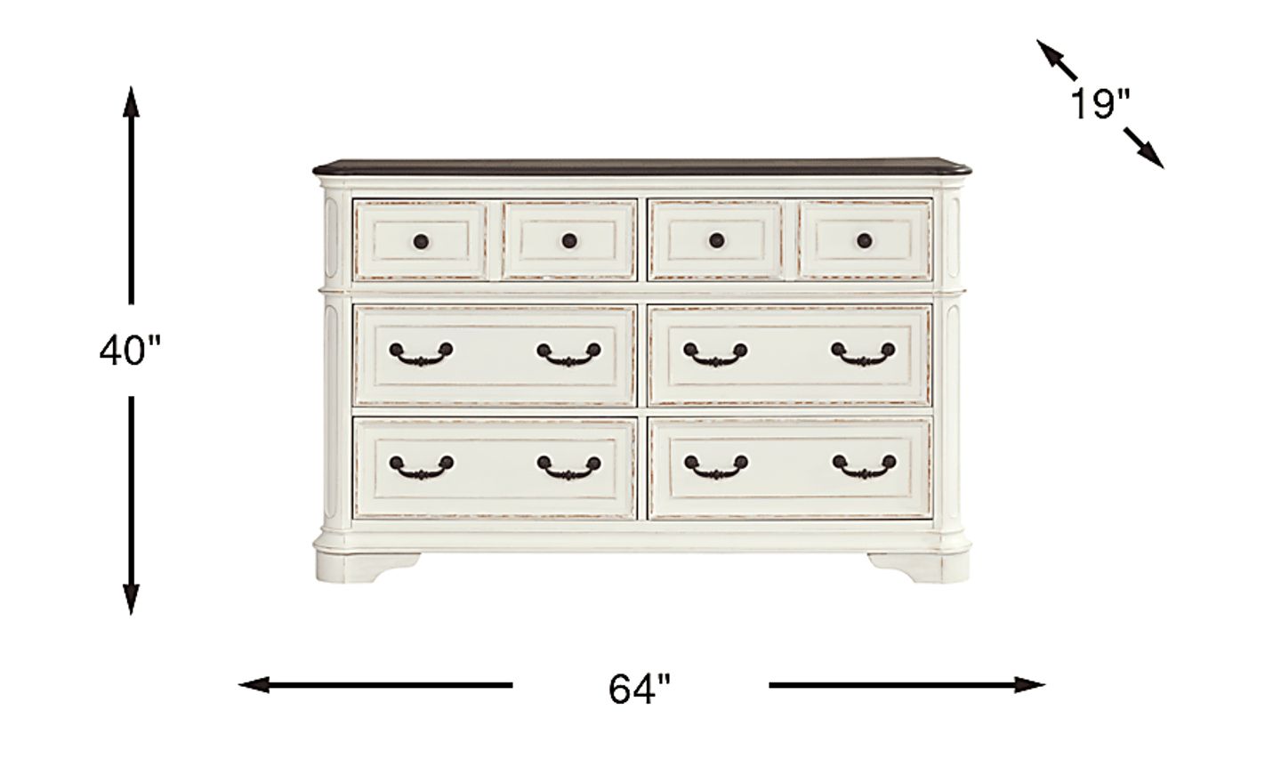 The French provincial inspired design and intricate detailing of the Marien Park dresser brings a taste of old-world grandeur with a touch of timeless sophistication. Constructed of birch wood solids with oak veneers, this transitional piece features six drawers with dark metal pulls, French dovetail joints in the front, English dovetail joints in the back, felt-lined top drawers, dustproof bottoms and side-mounted ball bearing glides for support and longevity.