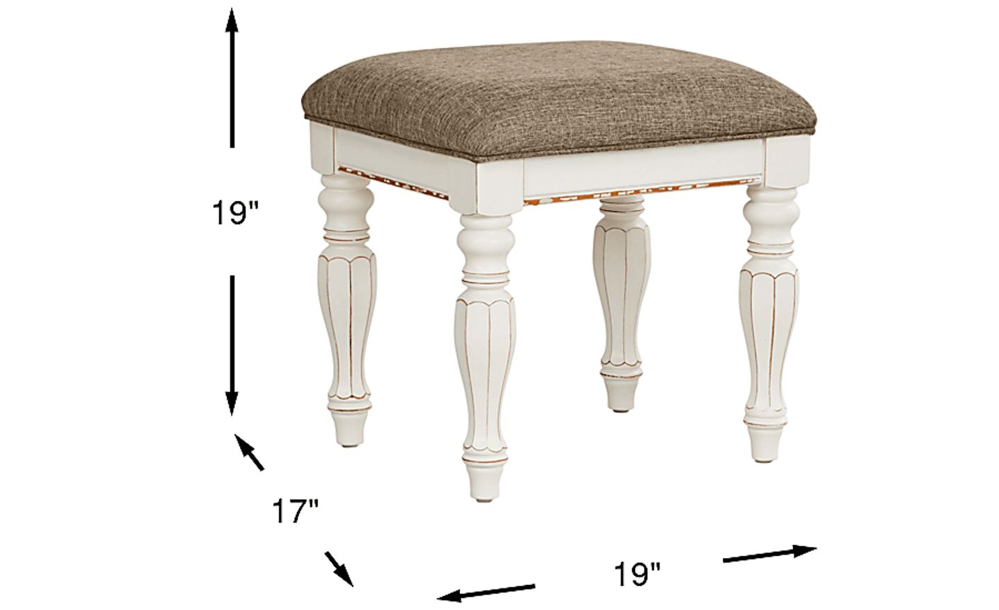 The French provincial inspired design and intricate detailing of the Marien Park stool brings a taste of old-world grandeur with a touch of timeless sophistication. Constructed of birch wood solids with oak veneers, this transitional piece features elaborate moldings in the legs and an upholstered seat cushion for an enhanced sophisticated look. 100% Polyester