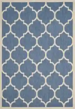 The synthetic fibers used in this rug are specifically chosen for their UV-resistant properties. In regions with intense sun exposure, this material helps prevent the vivid chambray blue and geometric pattern from fading. This ensures your outdoor seating area maintains its "just-refreshed" look even after a full season of direct sunlight.