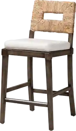 This stool is built with a solid mahogany wood frame, a premium hardwood prized in furniture making for its exceptional density, strength, and natural resistance to warping. The addition of natural rattan provides a flexible yet sturdy backrest. This combination of high-quality organic materials ensures the frame remains stable and resilient even in high-traffic kitchen environments.