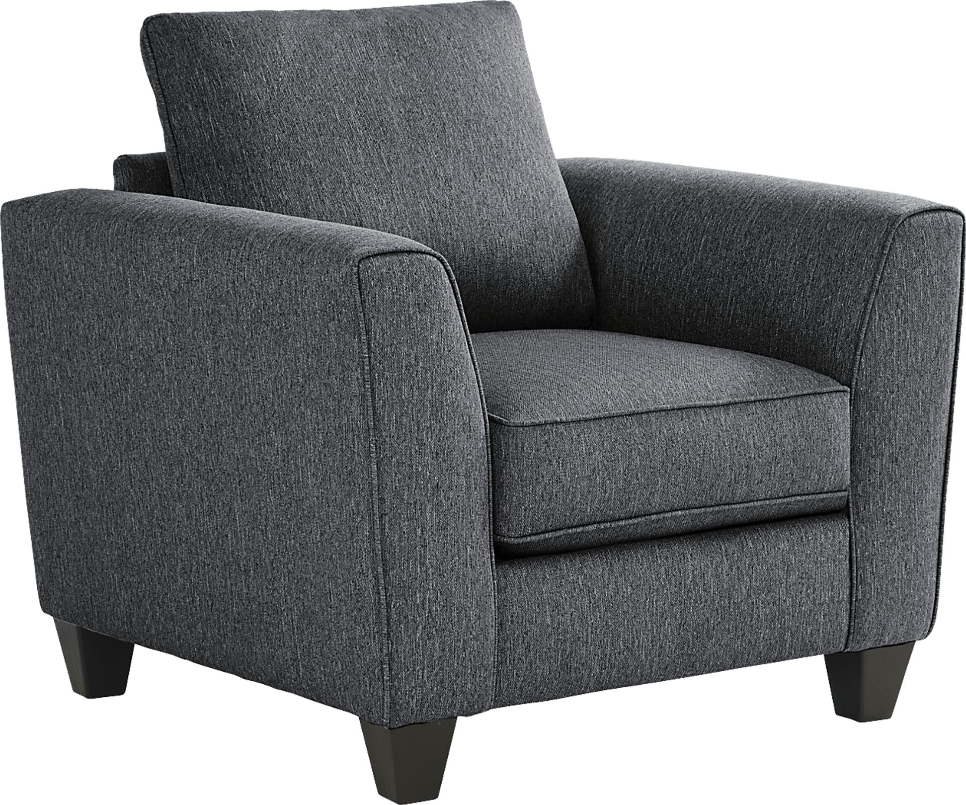 Come home to a designer couch for effortless relaxation with the Marisol Bay chair. The transitional décor has pillowy cushions, tailor welt stitching, and padded wedge arms. This sleek furniture addition features a spacious seat, tapered square legs in a wood finish, and soft upholstery that's as functional as it is chic. Reversible cushions allow you to evenly distribute wear and tear, making it substantially more durable and easier to clean. 100% Polypropylene.
