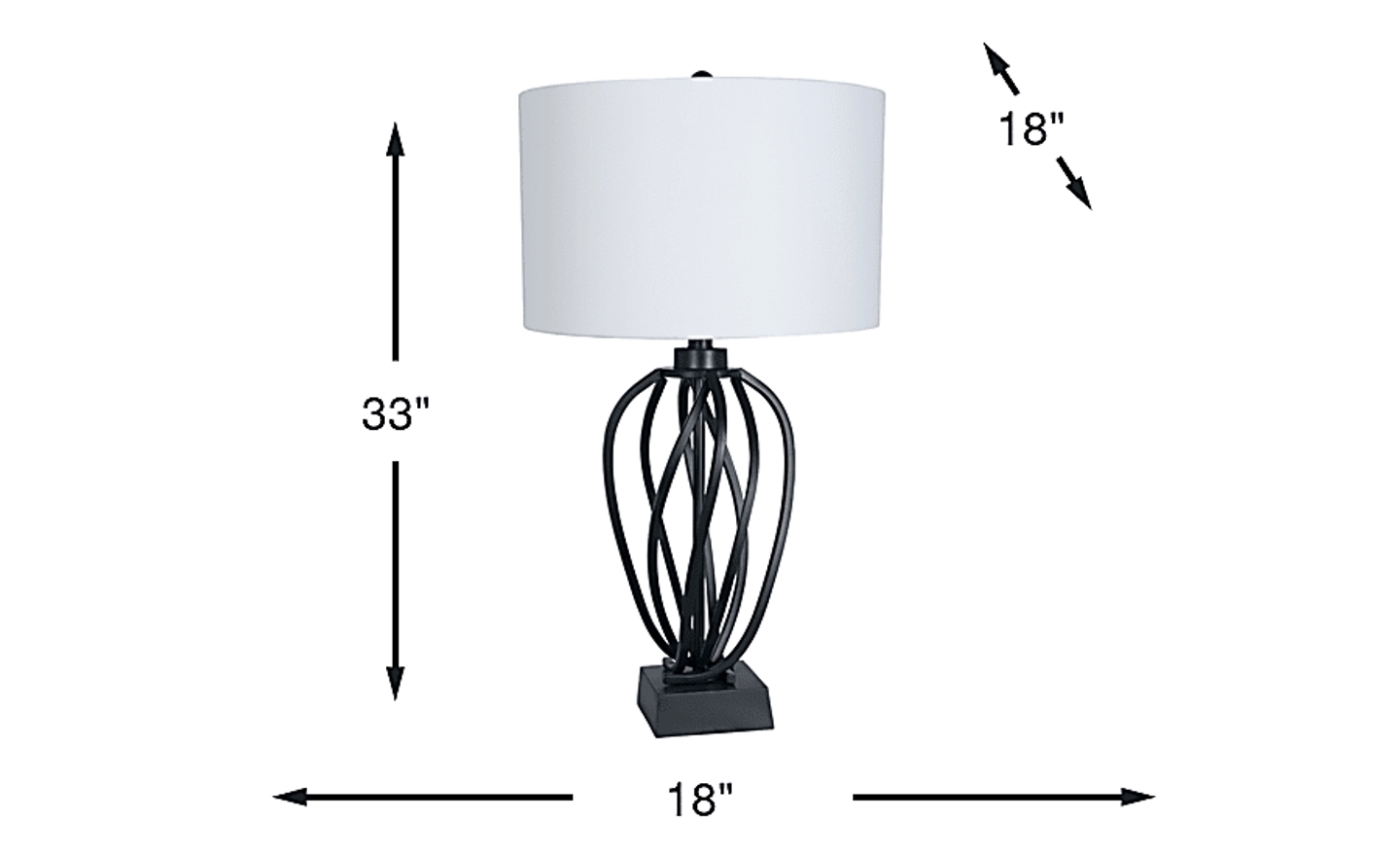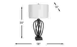 An open framework and shaped metal make the Markala lamp an intriguing addition to your home decor. Topped by a white drum style shade, the lamp has a three-way switch that accommodates a maximum 100-watt bulb.