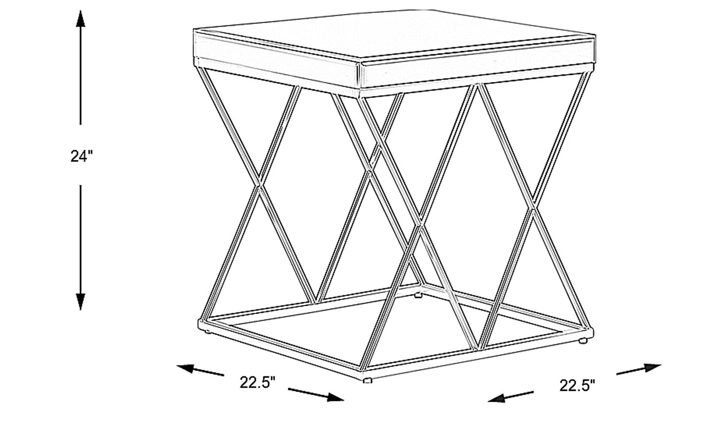 Sleek contemporary style and beautiful reflective mirrors on the top and sides make the Markita end table something special. The metal base is equally appealing thanks to a crisscross design and gold finish.