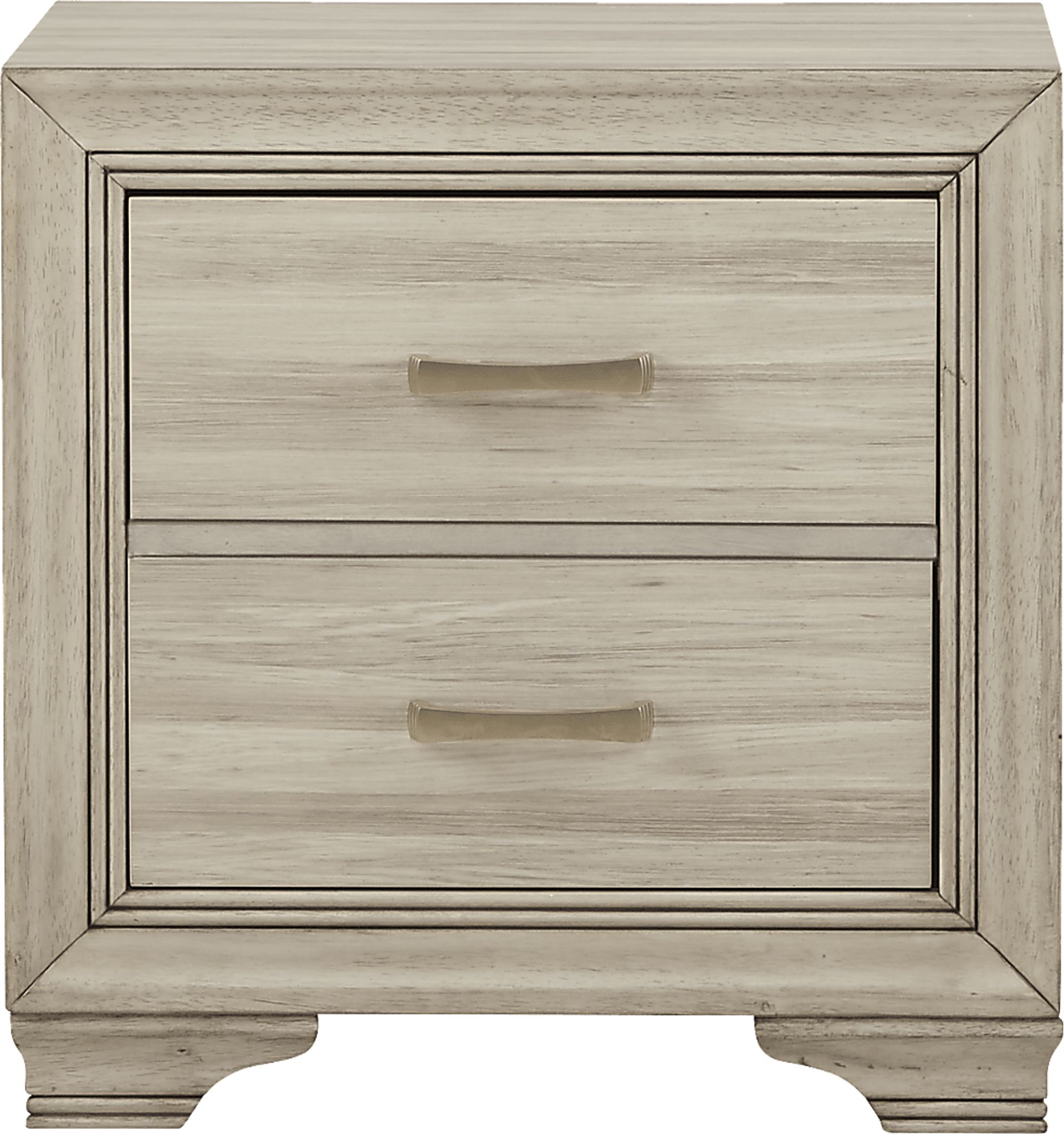 Spacious twin drawers and a stylish weathered natural finish make the Marlow nightstand a lovely bedside companion. Each drawer, made with strong English dovetail joints, features bar shaped hardware in a brush nickel finish. Clean lines lend an understated look that's simply irresistible.