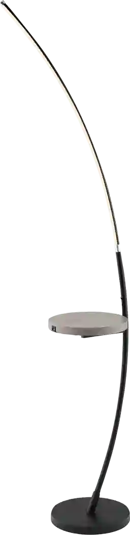 Combine two-in-one innovation with expert craftsmanship in the Marona LED Arch floor lamp with built-in wireless charging & USB tray table for your home. It features a metallic black finish over metal construction, topped by an aluminum and acrylic diffuser, but the prominent feature is its sleek, curved, wispy-thin silhouette. Functional tray table in trendy gray wash wood finish includes a built-in QI wireless charging pad and USB port, allowing you to fast charge compatible smart phones or other electronic devices with ease. One touch switch located on pole provides four-way dimming lighting control. It's an eye-catching design that looks great in a modern living space or a home entertainment room. Partial assembly may be required.