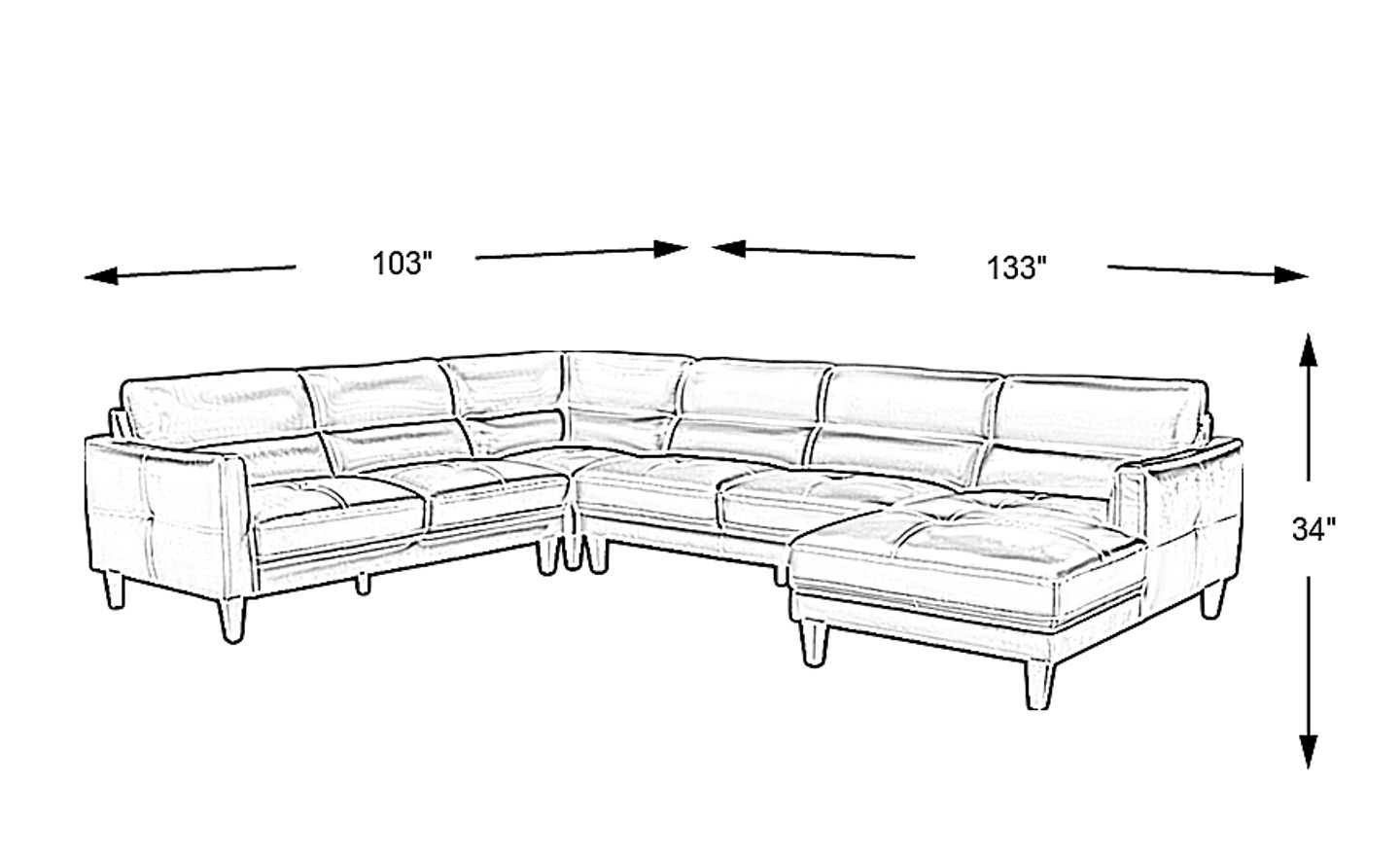 Highlighted by an irresistible design, the Marotta sectional melds casual luxury with subtle elegance for splendidly simple seating. Upholstered with light gray top grain leather where the body touches, this sectional is configured with a pair of sumptuously padded sofas and a right arm facing chaise with tufted outside arms and seats. Sophisticated track arms frame the sectional's stunning profile while cylindrical wooden legs in brown finish ground this piece in solid warmth. Upholstery:Top grain leather where the body touches and polyurethane fabric sides and backs.