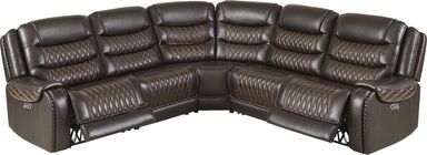 Intimate gatherings and festive occasions become more comfortable and sophisticated with the Drew and Jonathan Marquee collection, created to elevate great times with its sumptuous curves, striking details, and packed premium features. This traditional sectional showcases supple, deep brown top grain leather where the body touches and plush attached seat and back cushions for ultimate support. Contrasting top-stitched seams throughout the collection add a stylish flair, while contrasting welt and quilting details across the backs, seats, and pad-over arms create textural elegance. Triple power reclining offers adjustable headrests, footrests, and lumbar support as well as a zero-gravity mechanism for a weightless reclining experience. Additional features like hidden cupholders and USB charging on control panels elevate the experience for luxurious lounging. Upholstery: Top grain leather where the body touches and polyurethane fabric sides and backs. Leather is a durable, low maintenance product, however, general regular maintenance is necessary. To keep your leather clean, vacuum it regularly, removing any dust, and clean it with water and a mild non-detergent soap.