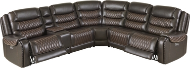 Intimate gatherings and festive occasions become more comfortable and sophisticated with the Drew and Jonathan Marquee collection, created to elevate great times with its sumptuous curves, striking details, and packed premium features. This traditional sectional showcases supple, deep brown top grain leather where the body touches and plush attached seat and back cushions for ultimate support. Contrasting top-stitched seams throughout the collection add a stylish flair, while contrasting welt and quilting details across the backs, seats, and pad-over arms create textural elegance. Triple power reclining offers adjustable headrests, footrests, and lumbar support as well as a zero-gravity mechanism for a weightless reclining experience. Additional features like hidden cupholders, storage in the center console, and USB charging on control panels elevate the experience for luxurious lounging. Upholstery: Top grain leather where the body touches and polyurethane fabric sides and backs. Leather is a durable, low maintenance product, however, general regular maintenance is necessary. To keep your leather clean, vacuum it regularly, removing any dust, and clean it with water and a mild non-detergent soap.