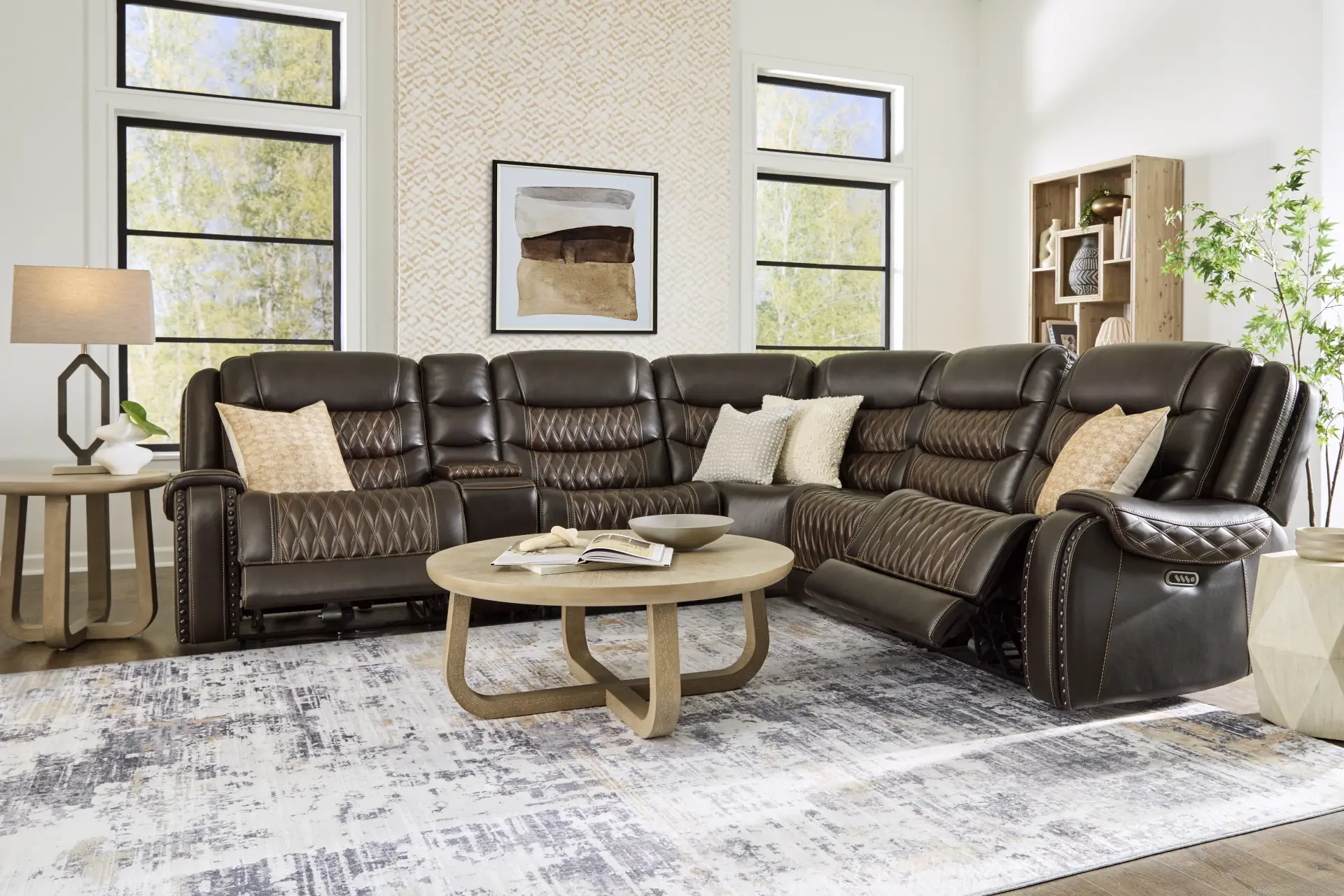 With overall dimensions of 133.5"W x 120"D, this sectional is a substantial piece designed for larger living rooms or open-concept spaces. When planning your layout, ensure there is several inches of clearance from the wall to allow the zero-gravity reclining mechanism to fully extend. Measuring your entryways is also vital, though our delivery teams are experienced in navigating large-scale pieces into your home.