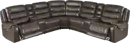 Intimate gatherings and festive occasions become more comfortable and sophisticated with the Marquee collection, created to elevate great times with its sumptuous curves, striking details, and packed premium features. This traditional sectional showcases supple, deep brown top grain leather where the body touches and plush attached seat and back cushions for ultimate support. Contrasting top-stitched seams throughout the collection add a stylish flair, while contrasting welt and quilting details across the backs, seats, and pad-over arms create textural elegance. Triple power reclining offers adjustable headrests, footrests, and lumbar support as well as a zero-gravity mechanism for a weightless reclining experience. Additional features like hidden cupholders, storage in the consoles, and USB charging on control panels elevate the experience for luxurious lounging. Upholstery: Top grain leather where the body touches and polyurethane fabric sides and backs. Leather is a durable, low maintenance product, however, general regular maintenance is necessary. To keep your leather clean, vacuum it regularly, removing any dust, and clean it with water and a mild non-detergent soap.