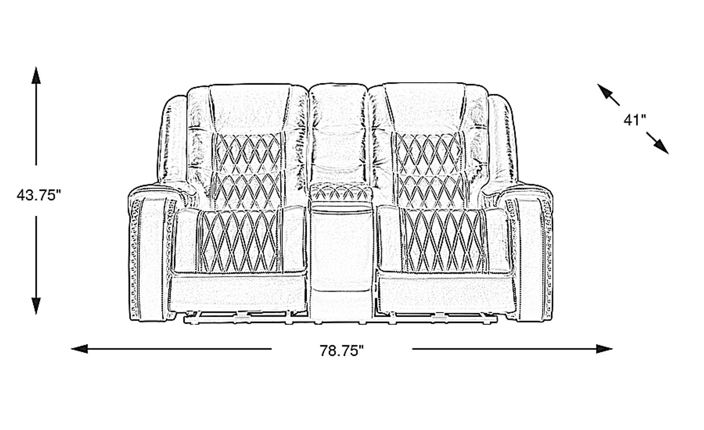 To guarantee a smooth delivery, you should measure the width, height, and diagonal depth of all entryways and hallways. This reclining loveseat measures 78.75"w x 41"d x 43.75"h, but many of our reclining models are designed to come apart for easier transport through tight spots. Our expert delivery team handles the heavy lifting, but we recommend mapping out the path and ensuring at least 18-24 inches of clearance around the final placement area for walkways and optimal reclining extension.