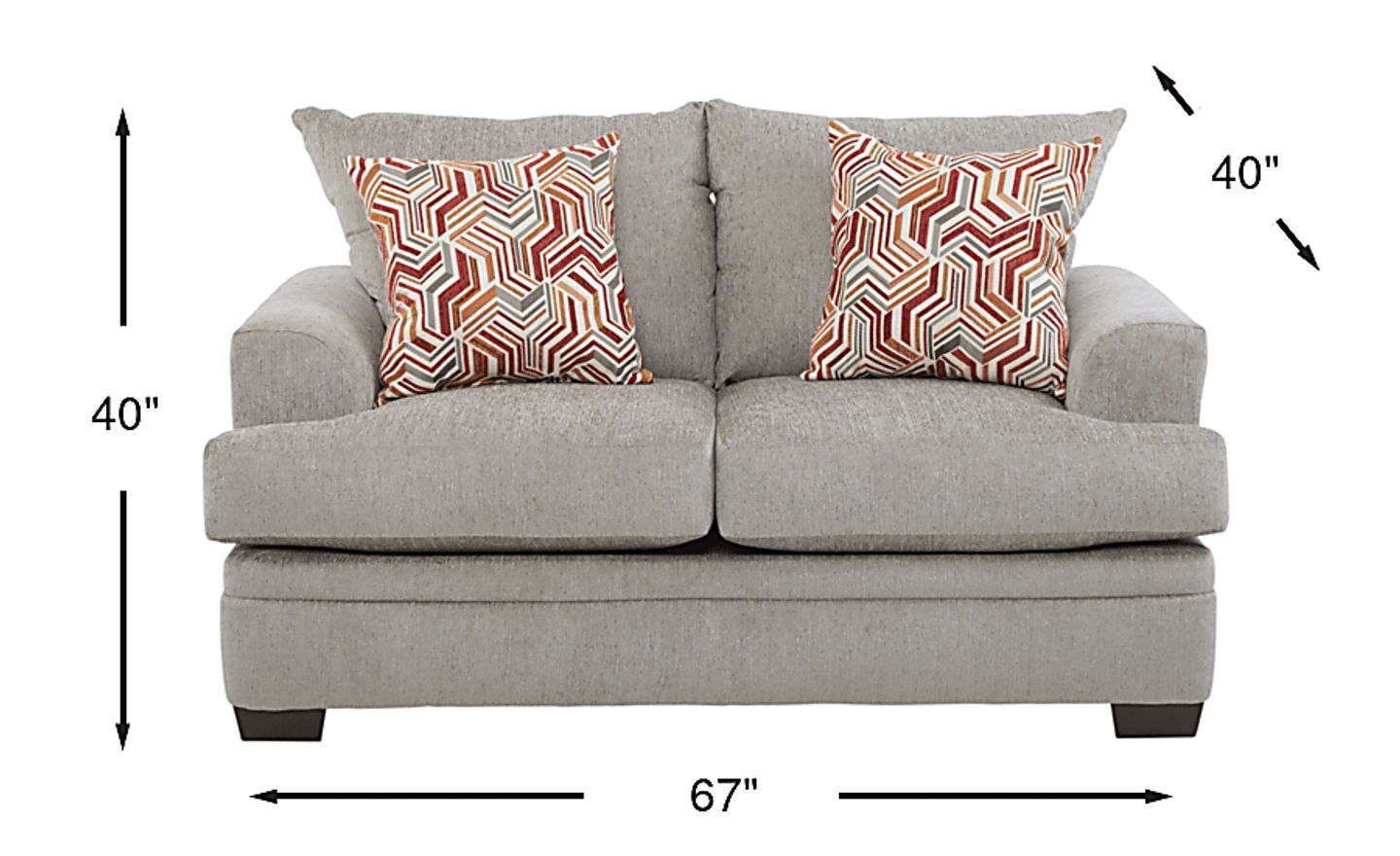 Cozy seating with room for two, the Marquis Heights loveseat is sleek and stylish. Upholstered in pewter chenille fabric, this plush loveseat features clean lines for a cool contemporary look. Bold accent patterns in coordinating tones add a splash of personality. 100% Polyester.