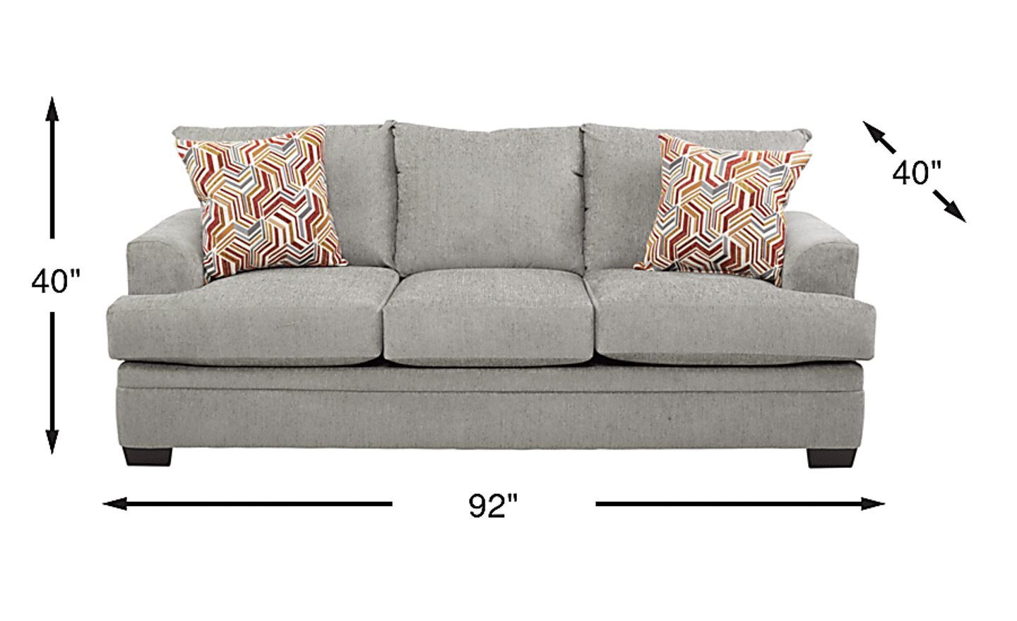 Casual contemporary comfort with a stylish side, the Marquis Heights sofa makes any house feel like home. Upholstered in plush pewter chenille fabric, this sofa features clean lines and comfortable cushions for a chic look that feels great too. Included contemporary patterned accent pillows in coordinating tones offer an ample helping of personality. 100% Polyester.