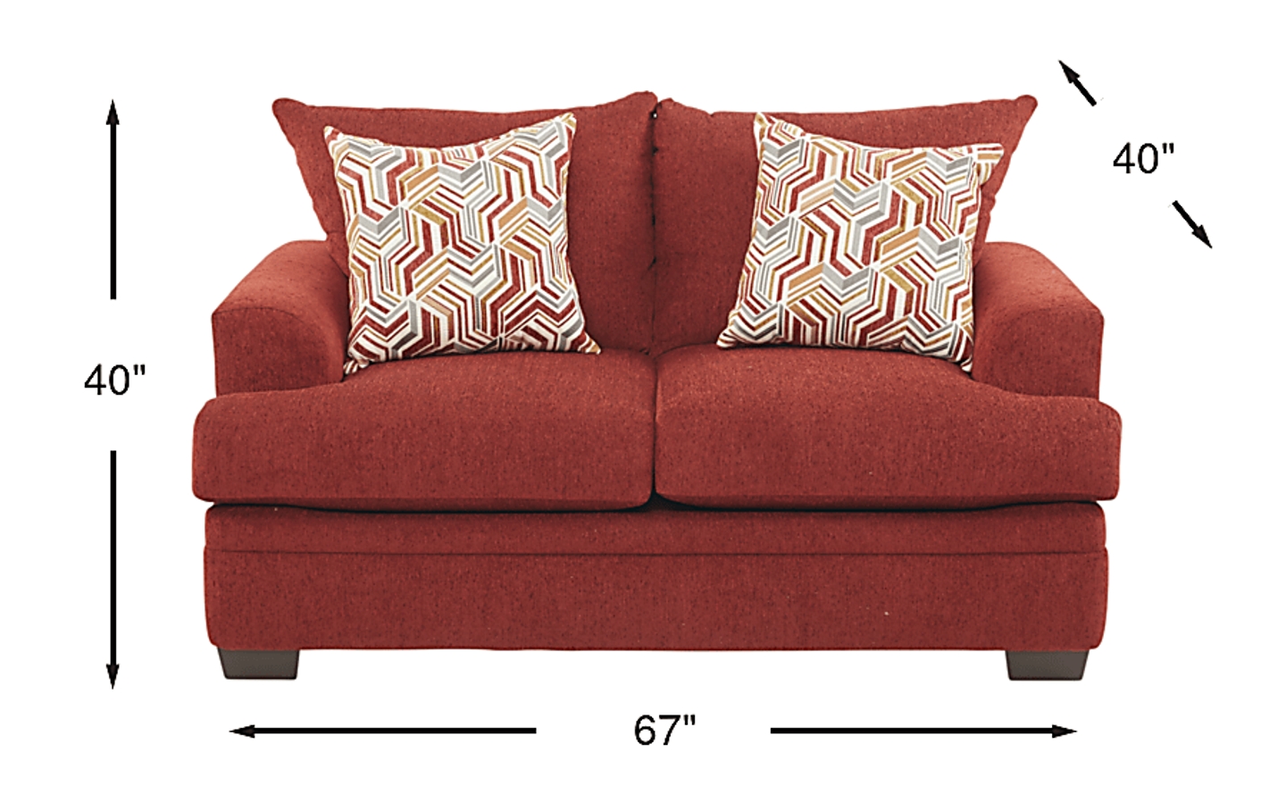 Cozy seating with room for two, the Marquis Heights loveseat is sleek and stylish. Upholstered in red chenille fabric, this plush loveseat features clean lines for a cool contemporary look. Bold accent patterns in coordinating tones add a splash of personality. 100% Polyester.