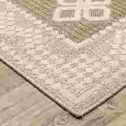 While engineered for outdoor durability, modern indoor/outdoor rugs are designed with a texture that is pleasant underfoot. This rug features an intricate geometric motif that provides a sophisticated look suitable for indoor living rooms or playrooms. It offers a unique balance of casual style and "hose-off" convenience that traditional indoor-only rugs cannot match.