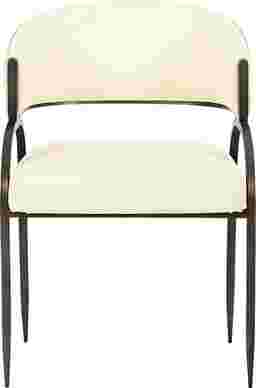Meet the Marscoms I cream armchair. Each piece pairs sleek black iron with your choice of easy-to-clean vegan leather, and luscious fabrics rich in texture and built to repel spills. Style-forward yet everyday-friendly, these sculptural silhouettes bring modern contrasts and cool composure to any space.