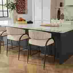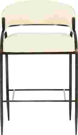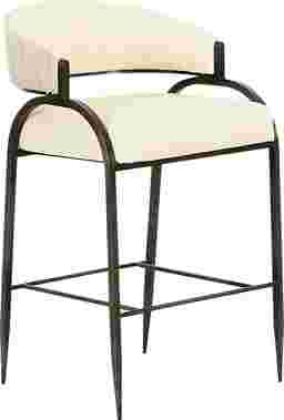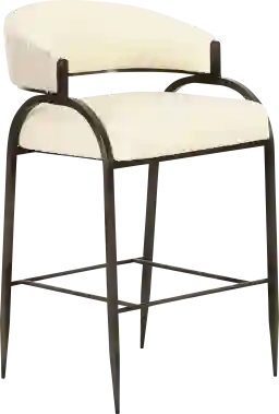 Meet the Marscoms I cream counter height stool. Each piece pairs sleek black iron with your choice of easy-to-clean vegan leather, and luscious fabrics rich in texture and built to repel spills. Style-forward yet everyday-friendly, these sculptural silhouettes bring modern contrasts and cool composure to any space.