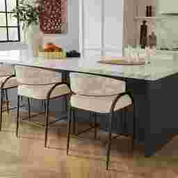 This stool is an excellent selection for urban apartments or smaller spaces. The sculptural iron frame and low-back design create a sleek, minimalist silhouette that minimizes visual clutter. Because the total height is only 36 inches, these stools maintain a low profile that keeps sightlines open across your kitchen, helping the room feel more expansive.
