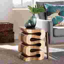 The Marshlife brown end table elevates and showcases the innate beauty of nature. This bohemian piece is expertly hand carved from the trunk of a suar wood tree. Its unique open-work design gives the illusion that the wood itself is folded for an astonishing display from every angle. The Marshlife will arrive fully assembled and showcases the raw grain and natural state of the wood, resulting in no two pieces being exactly alike. With a square tabletop, the Marshlife end table is a vibrant household embellishment.
