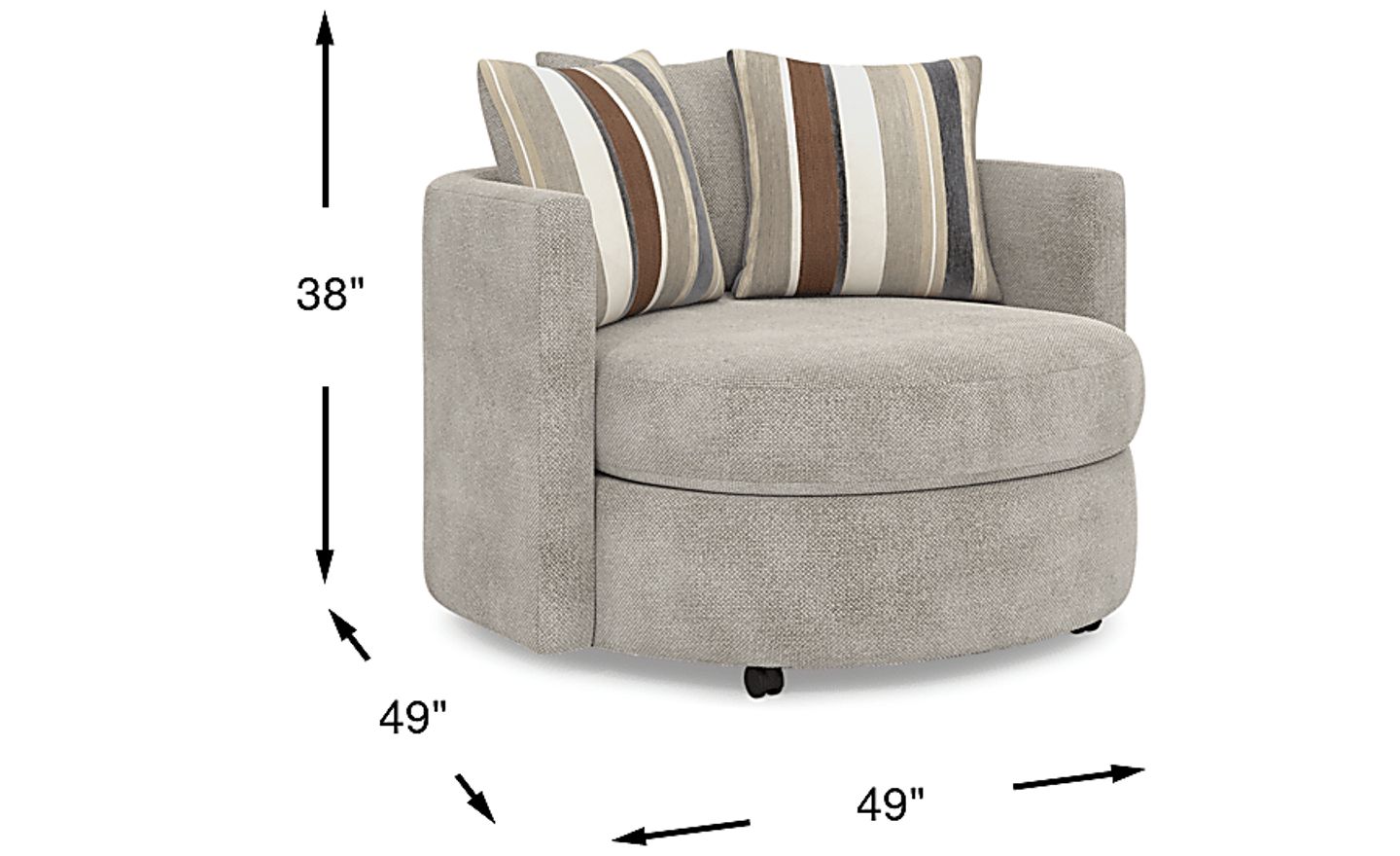 This chair features a generous depth of 49 inches, significantly deeper than a standard accent chair, which typically ranges from 30 to 35 inches. This "lounger" silhouette is designed for full-body relaxation, making it ideal for a dedicated reading nook or a spacious master suite. When measuring your space, ensure you account for the 38-inch width and allow extra clearance around the base so the swivel mechanism can rotate freely without hitting walls or other furniture.