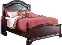 Richly appointed with a padded Ultrahyde headboard with stitching detail, the Martina bed is truly impressive. Made of poplar solids and cherry veneers with a cherry finish, graceful, flowing lines on the head and footboard add to the beauty of the bed. Martina 3 Pc King Bed
